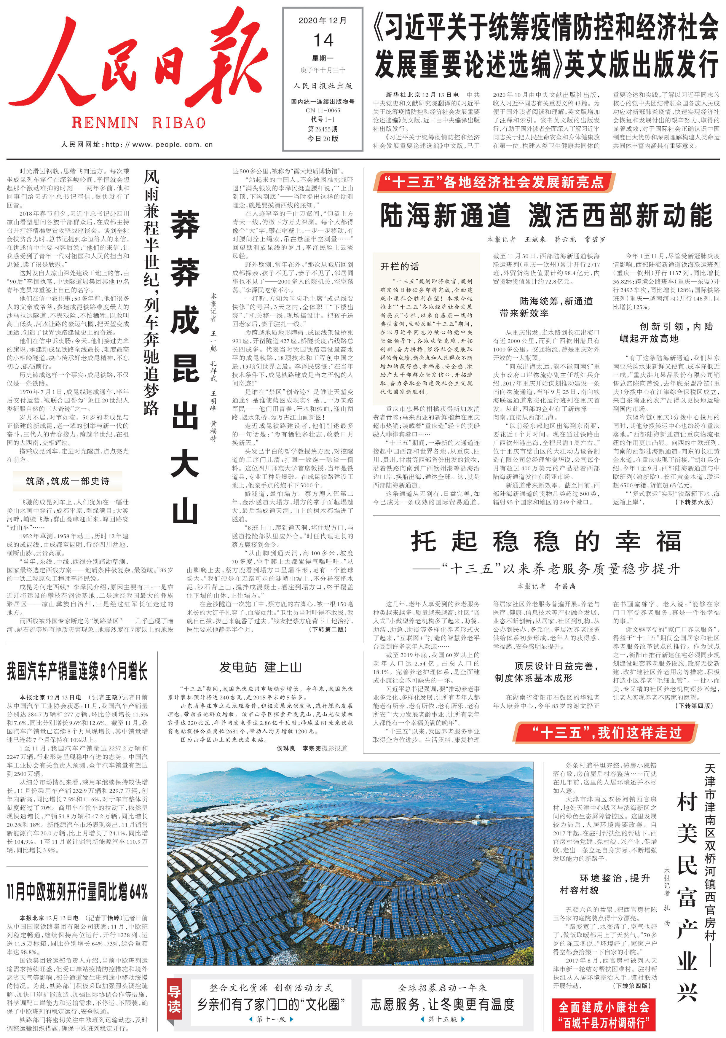 *【編者按】*今天,人民日報頭版頭條發表長篇通訊《莽莽成昆出大山》,講述了三代人青春接力,建設、守護成昆鐵路,再築新成昆的故事。“為有犧牲多壯志,敢教日月換新天。”築路、守路、通路、新路,跨越半世紀,老一輩的創舉與新一代的奮鬥,在祖國的大西南交相輝映。