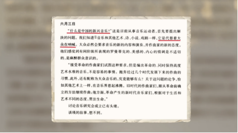 1933年6月3日,聶耳在日記開篇就提出了一個非常震撼的問題:“什麼是中國的新興音樂?”隨後自己又很快做出回答:“它是代替着大眾在吶喊。”