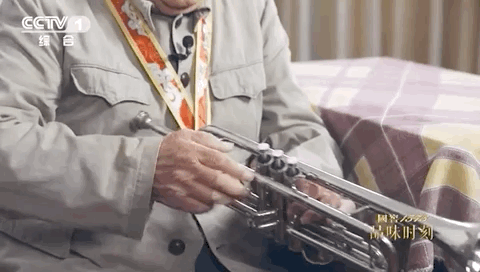 當老人用略顯顫抖的雙手,拿起小號吹響《義勇軍進行曲》時,現場觀眾起立合唱,肅然起敬。