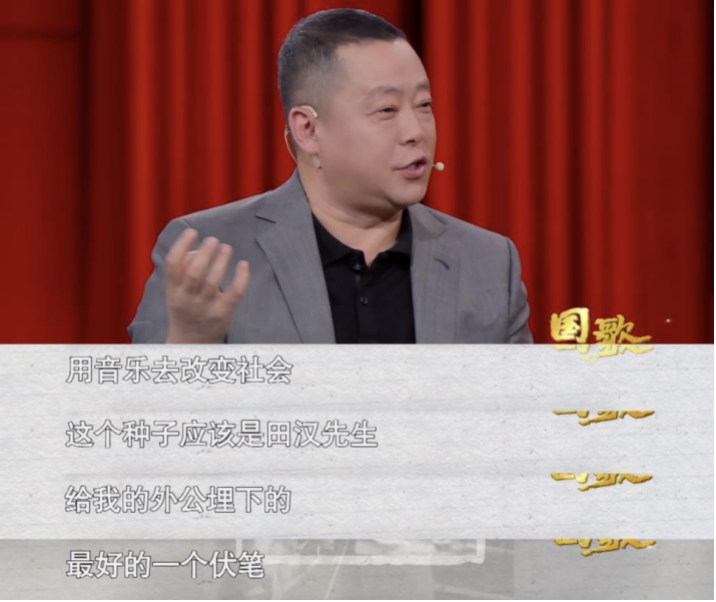 節目特別請到了田漢先生的孫子歐陽維教授、聶耳先生的侄外孫青山導演,以及《義勇軍進行曲》第一個版本的錄音師司徒慧敏先生的女兒司徒恩湄女士,他們講述了當年田漢先生和聶耳先生歌曲創作的始末。