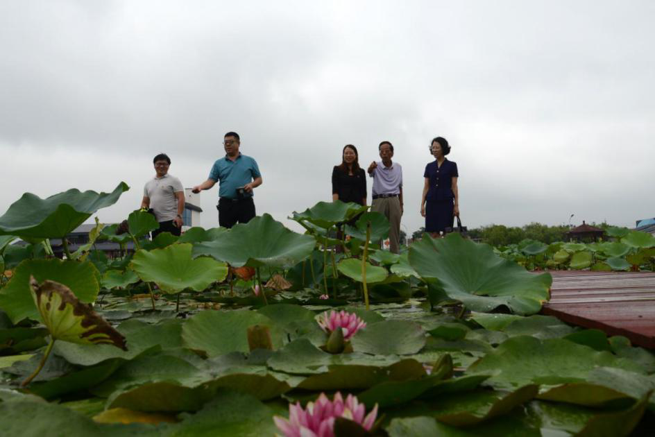 遊客在前進村的荷花池觀賞荷花 前進村供圖