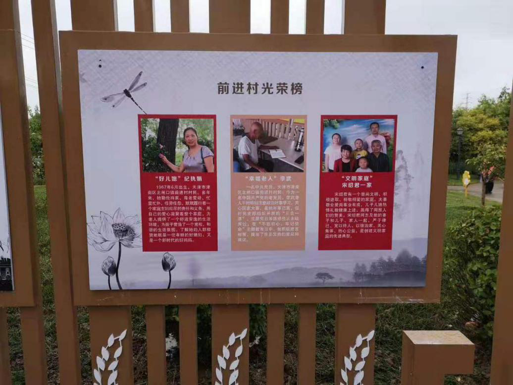 在不斷提升硬件設施的同時,前進村也在不斷培育文明鄉風,為綠色、高質量發展營造良好文化環境。立體打造“書香村莊”和“新時代文明實踐站”。“耕讀傳家興文化 脱貧攻堅小康年”的主題詞在電子背景板上呈現變幻的色彩。2020年7月31日,“新時代鄉村閲讀季”全國主題出版物閲讀示範活動在天津市津南區北閘口鎮前進村舉辦,使更多的村民參與閲讀、喜愛閲讀。幫扶組堅持黨建引領鄉風文明,全力打造新時代文明實踐站,組建學習宣傳、文化健身、互幫互助、文明風尚和興農產業發展 “4+1”志願服務隊伍,打造新時代文明實踐主題牆,不斷豐富村民的精神文化生活。