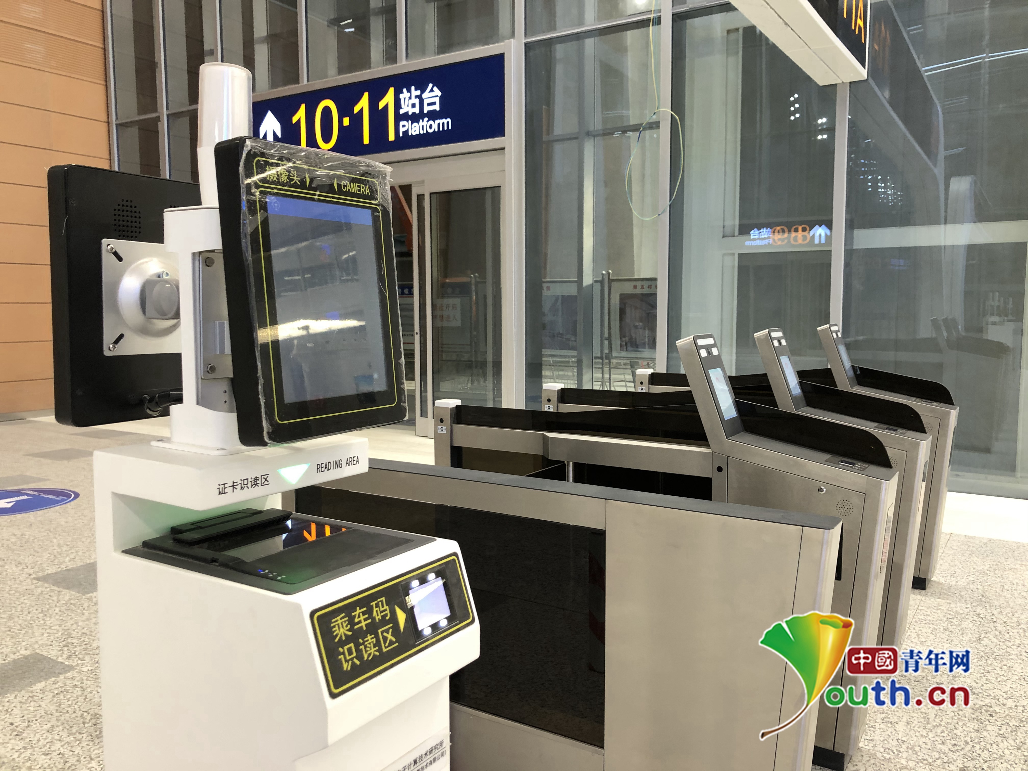 雄安站正在調試的驗票閘機。中國青年網 姜文山 攝