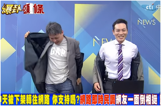 轉戰網絡平台放飛自我:台灣中天電視主持人現場吃漢堡、嘉賓脱衣秀