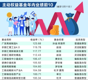 2020年還剩最後兩週多,公募基金年終業績排名戰進入關鍵時刻。目前有10只產品年內收益率超過100%,還有16只的收益率在90%以上,都有望問鼎最後的冠軍。