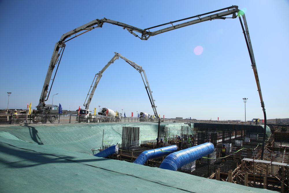 2019年9月22日,中國在土耳其的最大直接投資項目胡努特魯電廠在土南部阿達納省正式開工。這是項目主廠房澆築混凝土作業現場。(新華社記者鄭思遠攝)