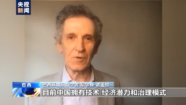 巴西環境問題學者 尼爾頓·諾蓋拉: 習主席的講話中提出的3項倡議十分重要,因為它們相輔相成。第一點倡議是開創合作共贏的新局面,這點引起了我的關注,確實只有在堅持多邊主義以及在聯合國的支持下才能實現共贏。各國達成共識、設定目標,然後在習近平主席提出的“氣候治理新體系”下實現目標。我認為中國將有能力實現承諾的這些目標,因為中國在過去十幾年以來已經在致力於減排,目前中國擁有技術、經濟潛力和治理模式,可以實現增加造林和使用更多可再生能源的目標。我認為這是中國作出的一個非常重要的承諾。而中國在向其他國家轉讓減排温室氣體的清潔技術、為使用這些技術的國家提供獲取技術和人員培訓方面擁有巨大潛力,中國這樣做也間接地助力於温室氣體的減排。