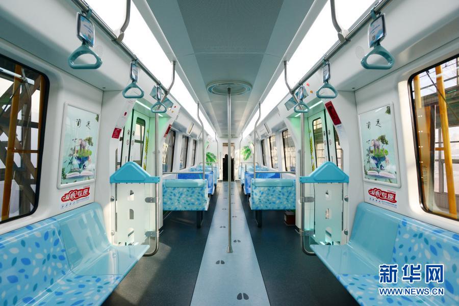 這是12月15日拍攝的將應用於廣東清遠磁浮旅遊專線的新型中低速磁浮列車車廂內部。新華社發