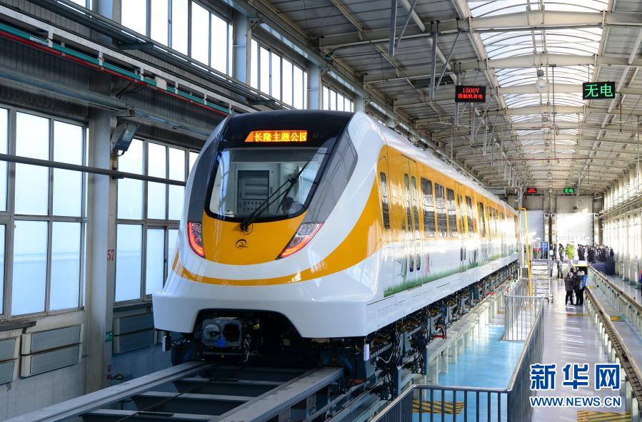 新華社長春12月15日電(記者段續)15日,由中車長春軌道客車股份有限公司(簡稱中車長客)研製的新型中低速磁浮列車在長春下線。這款新車將應用於廣東清遠磁浮旅遊專線,最高運行時速120公里。