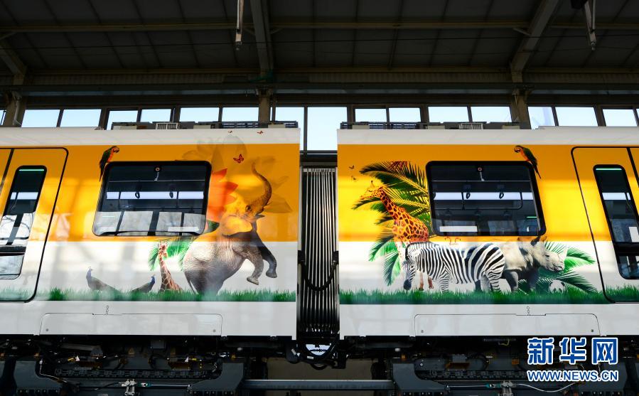 這是12月15日拍攝的將應用於廣東清遠磁浮旅遊專線的新型中低速磁浮列車的個性化塗裝。新華社發