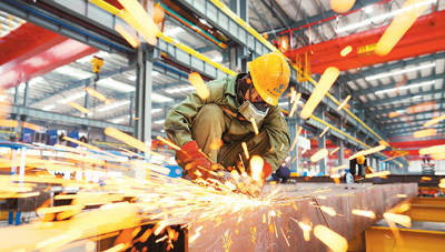 12月9日,位於浙江省湖州市南潯區和孚鎮的大東吳集團綠色集成建築製造基地內,工人在生產裝配式綠色建築構件。張斌攝(人民視覺)