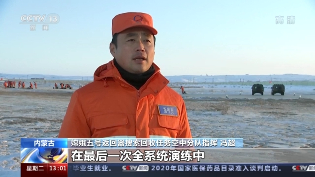 嫦娥五號返回器搜索回收任務空中分隊指揮 馮超: 在最後一次全系統演練中,我們進一步檢驗了空地分隊協同搜索的流程和接口,進一步檢驗了搜索回收分隊夜間搜索回收處置轉運的能力,進一步檢驗了任務裝備、工作狀態和性能參數。從演練結果看,空地分隊協同順暢,空中分隊到達現場迅速,地面分隊處置工作有序,達到了預期目的。