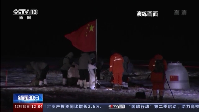 總枱央視記者 常豔玲: 我現在是在嫦娥五號返回器模擬艙的處置現場,天氣真的非常寒冷,但是我們的空中分隊、地面分隊根據這個落點預報,已經按照時間準時到達處置現場。