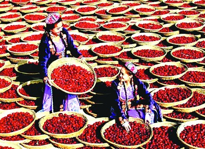 新疆塔里木盆地周圍成為新疆紅棗基地,豐收的紅棗讓農民增收致富。光明日報記者 王瑟攝/光明圖片