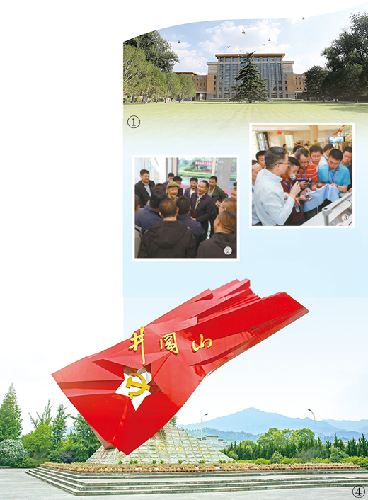 圖④:江西井岡山市內“井岡紅旗”雕塑。