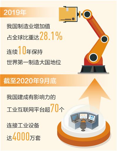 工信部統計顯示,“十三五”期間,我國傳統產業改造提升加快,培育形成了全球最大的智能製造系統解決方案市場。截至2020年9月底,建成超過70個有影響力的工業互聯網平台,連接工業設備數量達到4000萬套,工業APP超過35萬個;製造業重點領域企業關鍵工序數控化率和數字化研發設計工具普及率分別達到51.7%和72.1%。