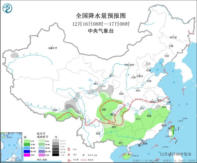 今天,南方的雨雪將開始減少、減弱,不過像是湖南長沙等地仍將可能出現雨夾雪天氣。具體來看,西北地區東南部、貴州中北部、江南西南部、新疆南疆西部以及西藏東部等地部分地區有小到中雪或雨夾雪。江南中東部、四川盆地、雲南東部、華南大部等地部分地區有小雨,局地中雨(10~20毫米)。