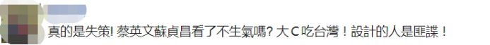 有人諷刺説,蔡英文、蘇貞昌看了不生氣?“大C吃台灣!設計的人是匪諜”。↓