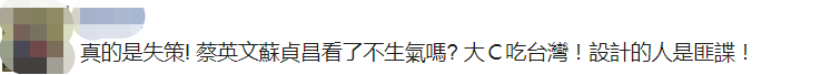 有人諷刺説,蔡英文、蘇貞昌看了不生氣?“大C吃台灣!設計的人是匪諜”。↓