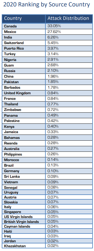 圖為Exigent Media公司的報告:2020年“攻擊”美國的排名