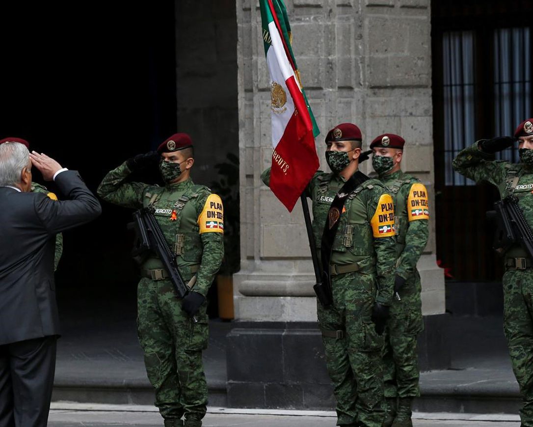 墨西哥總統洛佩斯向國旗敬禮(美聯社)