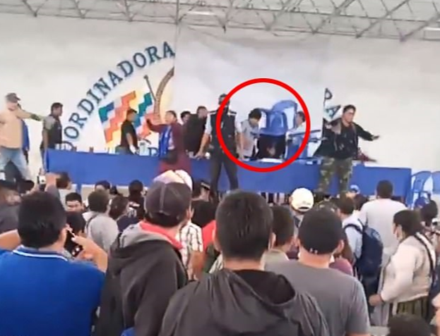 據《每日郵報》12月15日報道,在集會上拍攝的視頻顯示,莫拉萊斯坐在科恰班巴當地一家體育場的台上,當時他正在支持佩德羅·加西亞競選聖克魯斯省州長一職。台下的反對者開始向該黨領導人和前領導人喊話,要求他們離開大樓。一名警察和一名婦女站在台中央,試圖讓人羣平靜下來,喧鬧的人羣向台上投擲東西,包括椅子等。現場工作人員不停地把這些扔上來的東西擋了下來。視頻顯示,一個男子從舞台右側爬到了上面,將椅子砸向莫拉萊斯,剛好擊中他的頭部。目前尚不清楚這名男子是否因襲擊前總統而被捕。