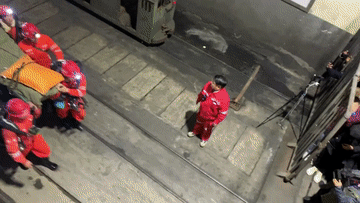 ▲救援人員轉運安全升井的被困人員