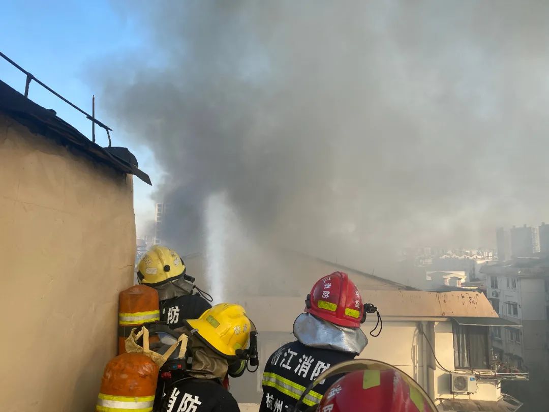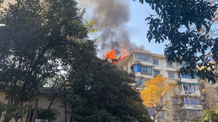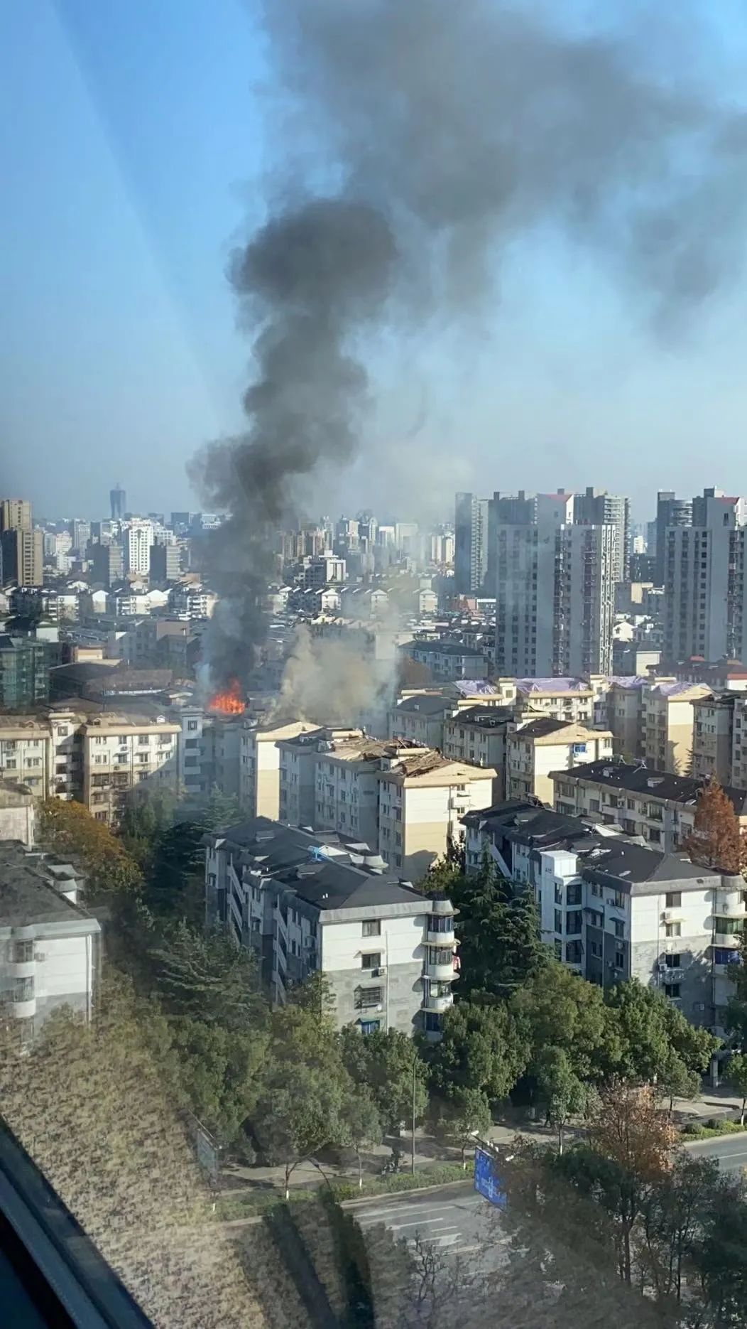 杭州鬧市一居民樓剛剛發生火災!風太大天又幹,大火一下滅不了!多虧了他們