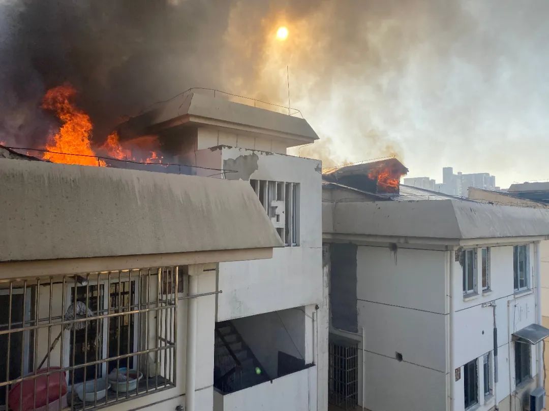 初步瞭解到,起火時,樓頂上正有施工人員在進行樓頂改造施工。起火後,施工人員以及小區物業工作人員第一時間進行了處置,但無奈今天樓頂風大且天氣乾燥,一時間無法撲滅。
