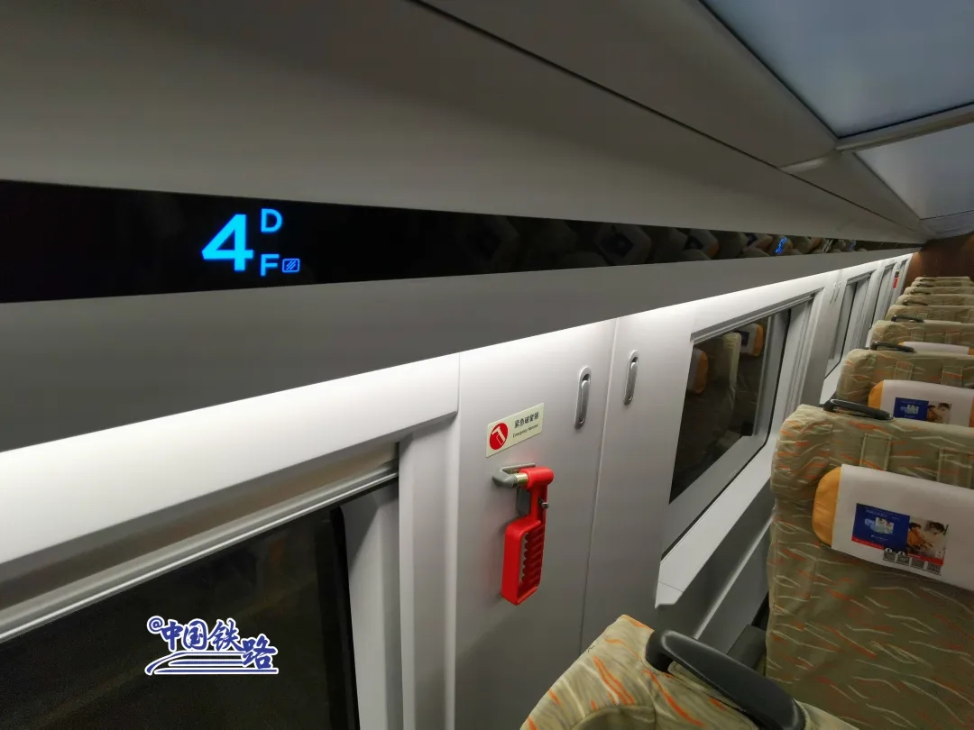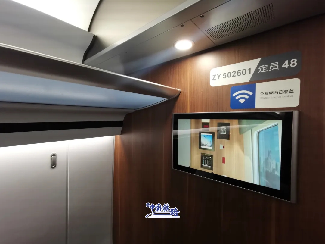 每節車廂內設置了4個温度傳感器,智能空調系統讓車內温度更適宜。行李架過道邊緣增加250個座位顯示器,方便旅客查找核對本人座席。