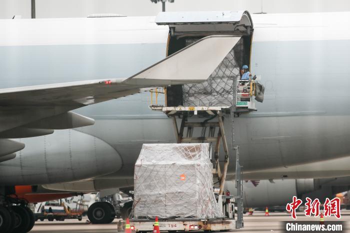 資料圖:浦東機場貨運停機坪,卸貨作業有序進行。 張亨偉 攝