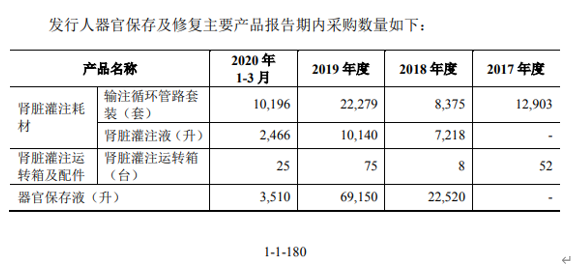 不僅如此,健耕醫藥2018年和2019年銷售器官保存液數量分別為2,285升和3,250升,而同年公司採購的器官保存液數量則分別為22520升和69150升,查銷量差異巨大。