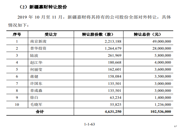 2019年10月,新疆嘉財將所持耘沃健康股權轉讓給了健耕醫藥;同期,新疆嘉財在2018 年 1 月入股於健耕醫藥獲得的7.80%股權,也在2019年11月全部對外轉讓。此時相距健耕醫藥首次發佈招股書申報稿僅相差6個月。