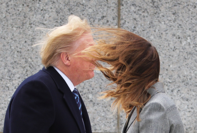 特朗普與梅拉尼婭在大風中(圖源:NBC)