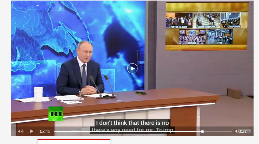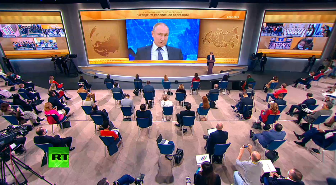 北京時間12月17日17時許,俄羅斯總統普京舉行2020年度記者會。