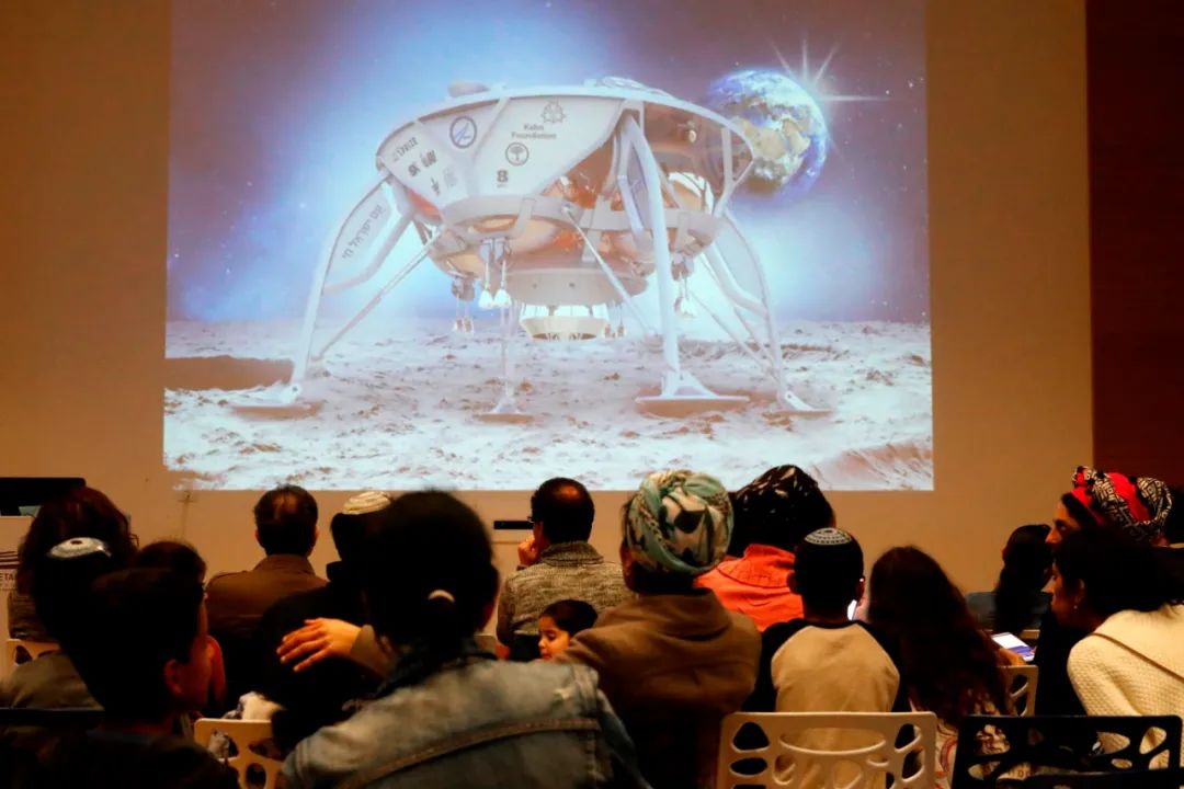 2019年4月11日,在以色列內坦亞,人們觀看“創世紀”號情況介紹。新華社/法新