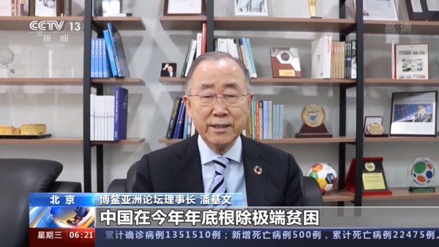 博鰲亞洲論壇理事長 潘基文: 中國在今年年底根除極端貧困,使得中國在發展中國家之列率先實現了可持續發展目標當中的消除貧困目標。