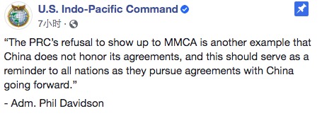 目前中國國防部沒有對此消息做出官方回應,但印太司令部主動發佈的這則新聞稿疑點重重。中美之間沒有如期召開MMCA這個事實應該是存在的,印太司令部不至於拿事實説謊,但為什麼沒有如期召開,是否真的是因為中方缺席,卻值得懷疑。