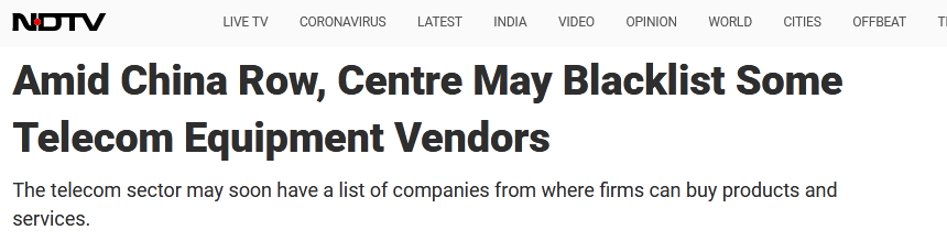 值得注意的是,NDTV報道又特別提到中國稱,印度政府拒絕詳細説明此舉是否會導致對中國供應商的限制。此外,該媒體還提到,印度政府上個月禁止了幾款中國移動應用程序(App)。印度電子和信息技術部宣稱,這些APP威脅到“印度的主權和完整”。