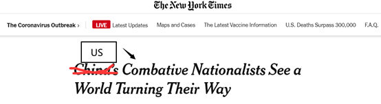 最後值得一提的是,《紐約時報》的前駐華記者儲百亮近日曾經在一篇報道中用“好鬥的民族主義”來妖魔化中國人在此次新冠疫情中不斷成長的大國心態。但現在看來,他這個“好鬥的民族主義”的修辭,用來形容當下的美國才是最貼切不過的。
