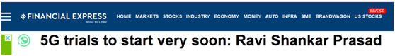 《金融快報》稱,普拉薩德當天在印度工業與內貿促進局 (DPIIT)及印度工業聯合會(CII)的一次活動上説,“我們試圖利用印度的數字生態系統來反思所有行業的治理。4G在這裏運行地很好,5G也一樣,我們很快就會開始試驗”。