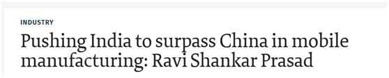 另據印度報業托拉斯,普拉薩德在本週早些時候的一場活動上還直言:他的目標是讓印度在手機制造領域“超越中國”。