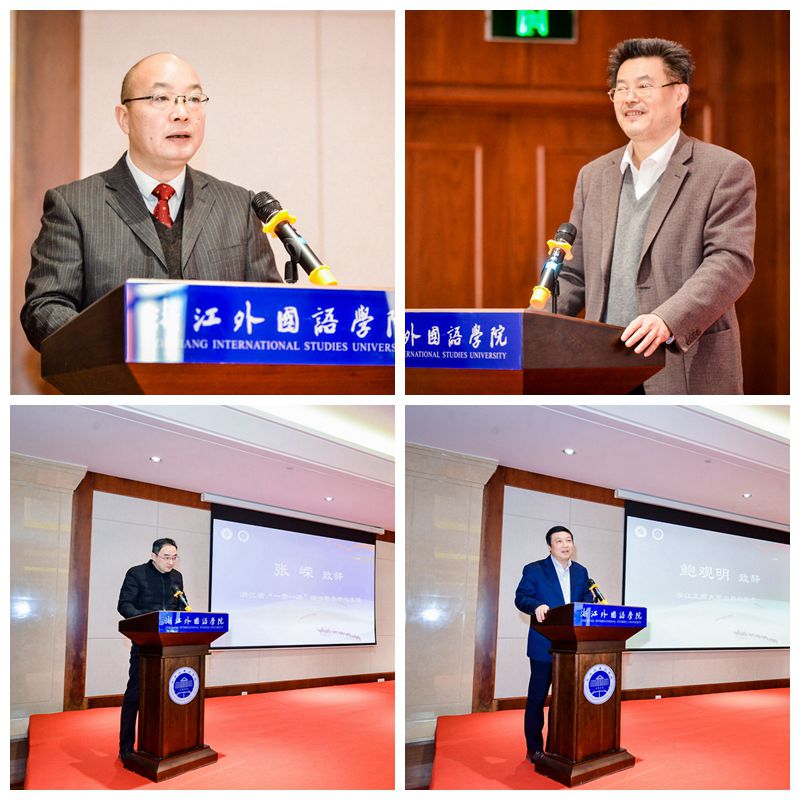 12月16日,《走進“一帶一路”叢書》(以下簡稱《叢書》)階段成果發佈會暨合作簽約儀式在浙江外國語學院舉行。校黨委書記宣勇致開幕詞。浙江省社科聯黨組成員、副主席謝利根,省外辦二級巡視員葛志宇,省“一帶一路”綜合服務中心主任張嶸,浙江工商大學出版社社長鮑觀明出席開幕式並致辭。副校長張環宙主持開幕式。