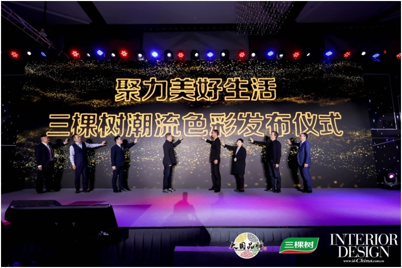 在發佈會的最後環節,劉翊、張麗、宋建明、陸巍、劉元秀、匡正三、黃博思、趙虎共同登台,正式啓動“聚力美好生活 三棵樹潮流色彩發佈儀式”。