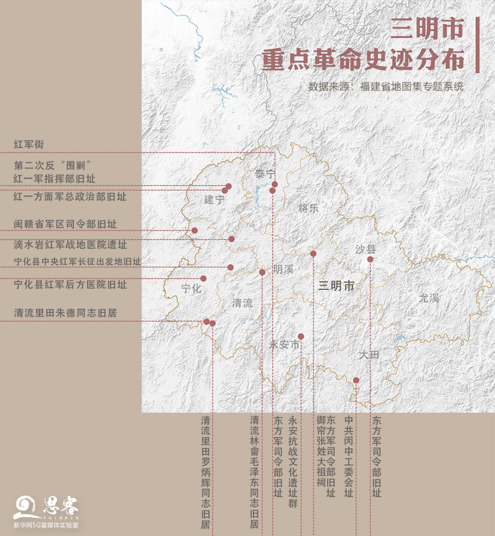 ▲點擊圖片,查看三明市重點革命史蹟分佈。