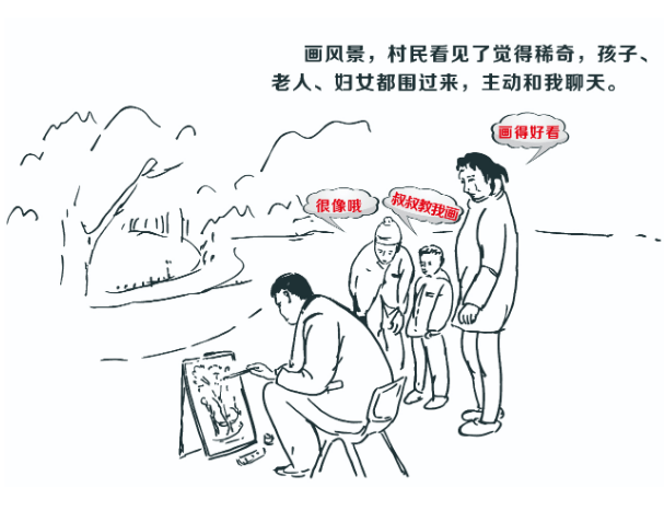 畫村裏的風景和村民