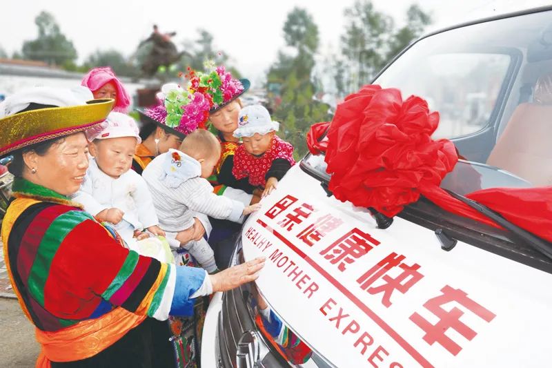 近年來,全國婦聯中國婦女發展基金會整合健康公益資源,加大在貧困地區開展“母親健康快車”項目力度,通過健康扶貧助力脱貧攻堅。截至2020年底,向貧困地區婦幼保健院等醫療機構捐贈2804輛“母親健康快車”及車載醫療設備,把專業優質的醫療服務送到了老百姓家門口。圖為青海省海東市互助土族自治縣土族媽媽帶着孩子參加義診活動。中國婦女發展基金會供圖