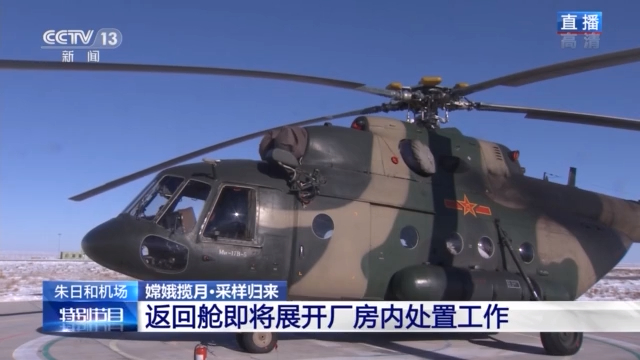 今天(17日)凌晨,探月工程嫦娥五號返回器在內蒙古四子王旗預定區域成功着陸,並於今天早上8點左右通過直升機吊運至朱日和機場,為了能夠給觀眾帶來最新消息,總枱央視團隊在剛剛進行四子王旗着陸場的新聞報道後,又連夜出發,驅車近5個小時來到朱日和,目前記者蘇洲已經抵達朱日和機場,並採訪了空中搜索分隊副指揮員劉鵬飛介紹嫦娥五號返回器的狀態。