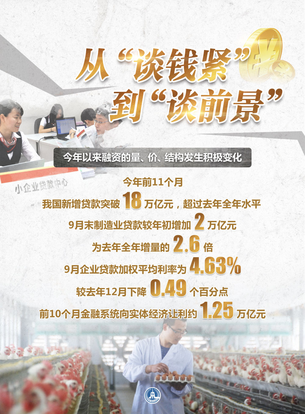 前11個月新增人民幣貸款超18萬億元,超過去年全年水平;3月以來,廣義貨幣M2增速連續9個月保持在10%以上;前10個月,金融系統已向實體經濟讓利約1.25萬億元,預計全年可以實現讓利1.5萬億元的目標……