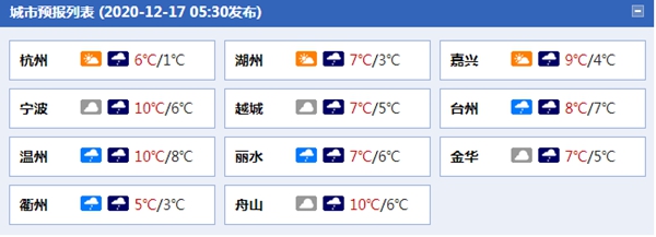 浙江各城市天氣預報。(數據來源:天氣管家客户端)